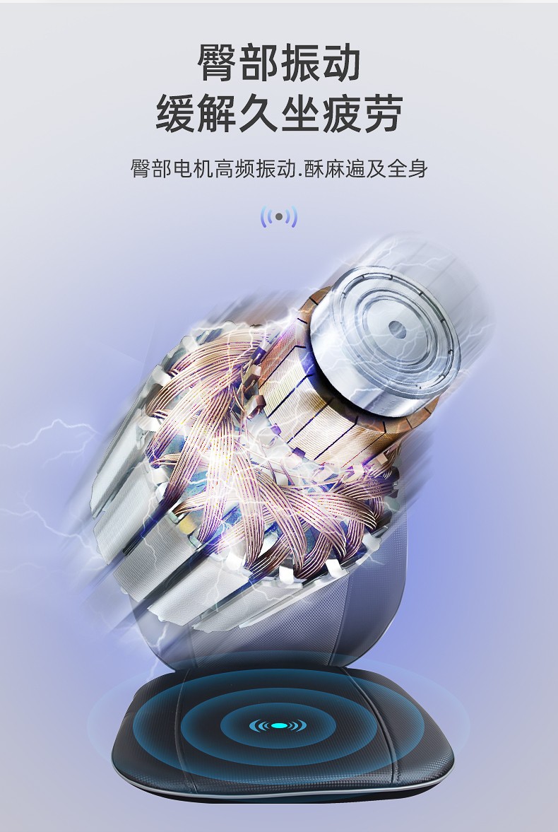 背部揉捏功能,三档按摩力度可供选择,背部定点按摩